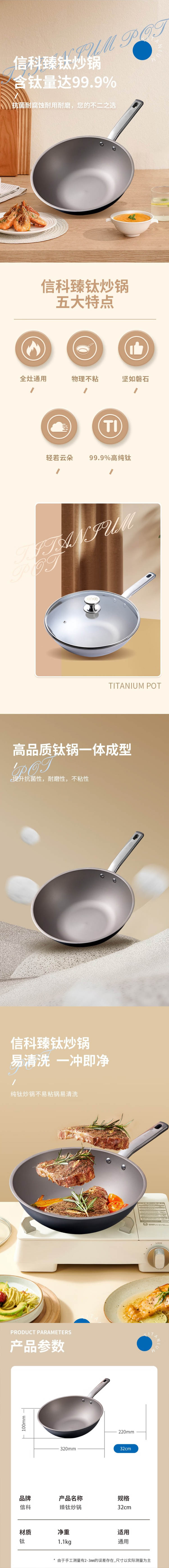 信科臻钛炒锅XTG-001+摩飞双仓可视空气炸锅MR8100(白色)