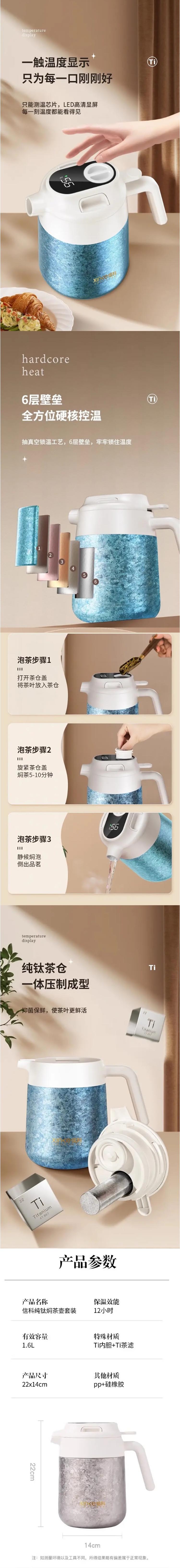 年迹 班章生态茶(生茶)2023年-B版8g*64+信科纯钛焖茶壶套装 XKH-7009冰川蓝