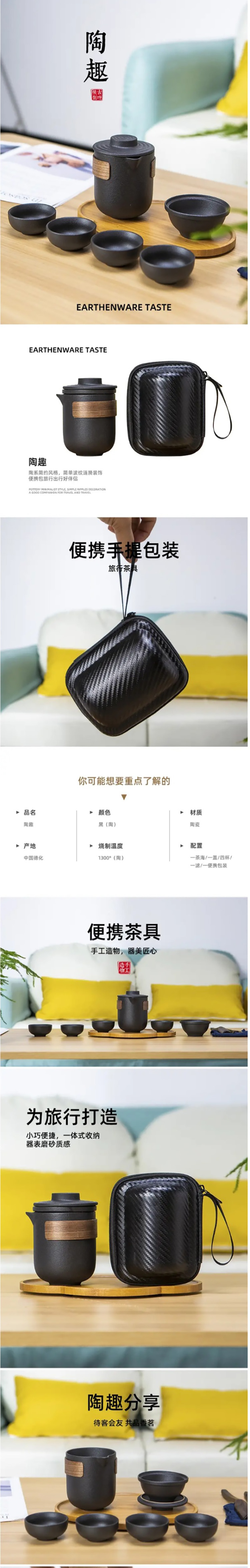 司顿修容修甲6件套STR2201+古时候黑陶便携茶具一壶四杯