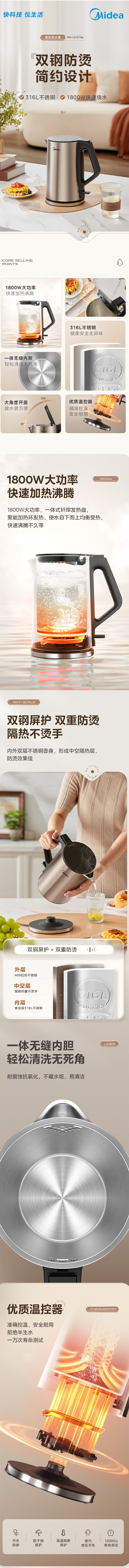 美的双钢电热水壶MK-HJ1510+金号纯棉毛巾绣丽2条装HY1678