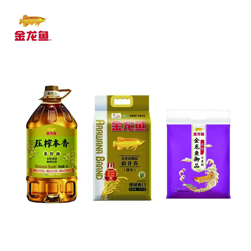 米面油套装: 金龙鱼压榨本香菜籽油5L*1金龙鱼御品稻花香5kg*1金龙鱼御品优质小麦粉5KG*1